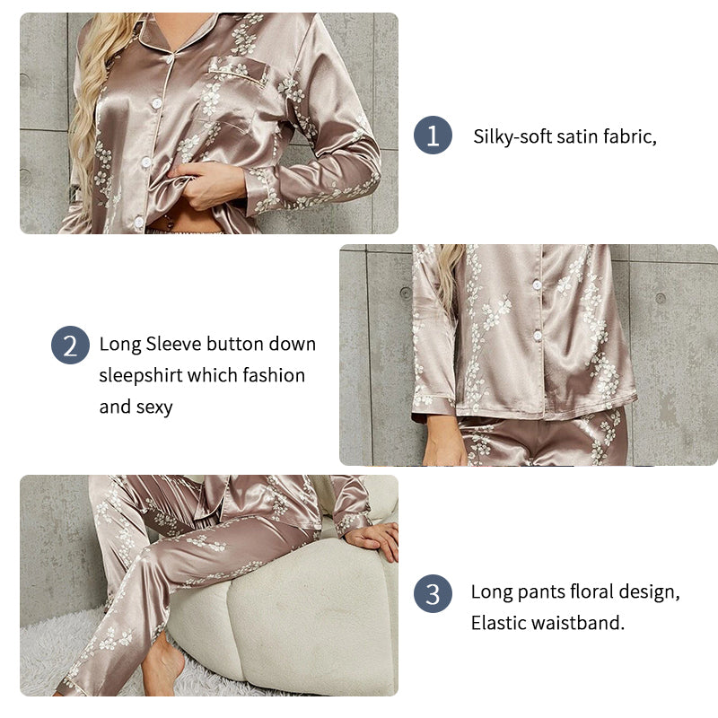 Silkkinen pyjamasetti Pitkähihainen yöasu